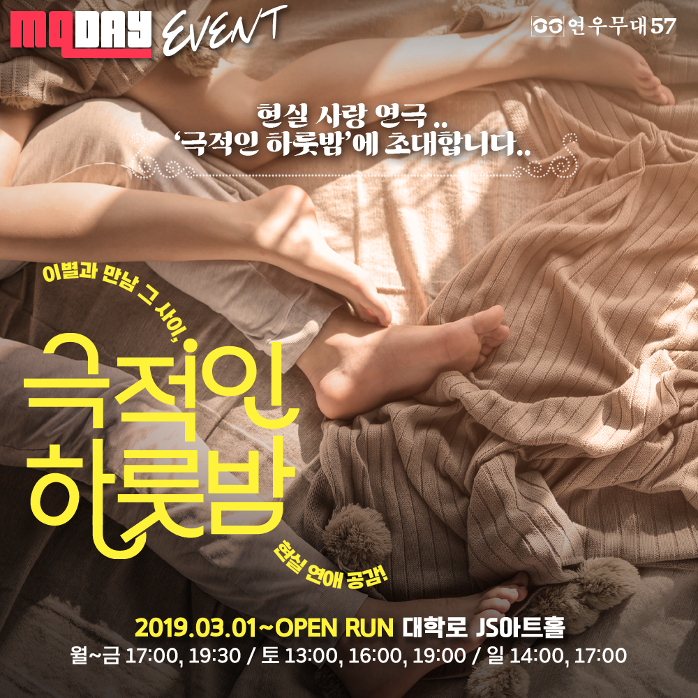 현실 연애 공감 연극 ‘극적인 하룻밤’의 초대권을 드립니다.