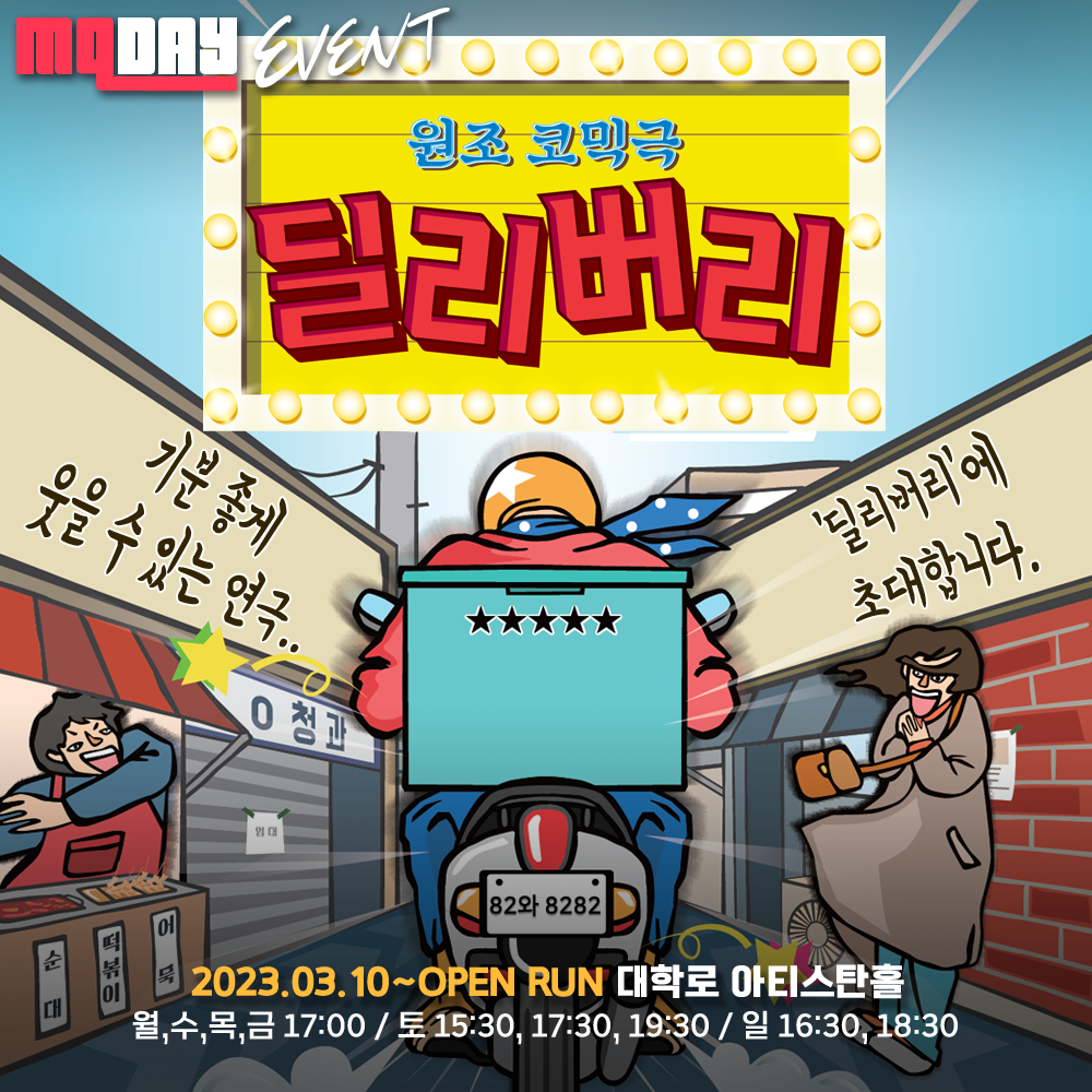 기분 좋게 웃을 수 있는 연극 ‘딜리버리’의 초대권을 드립니다.